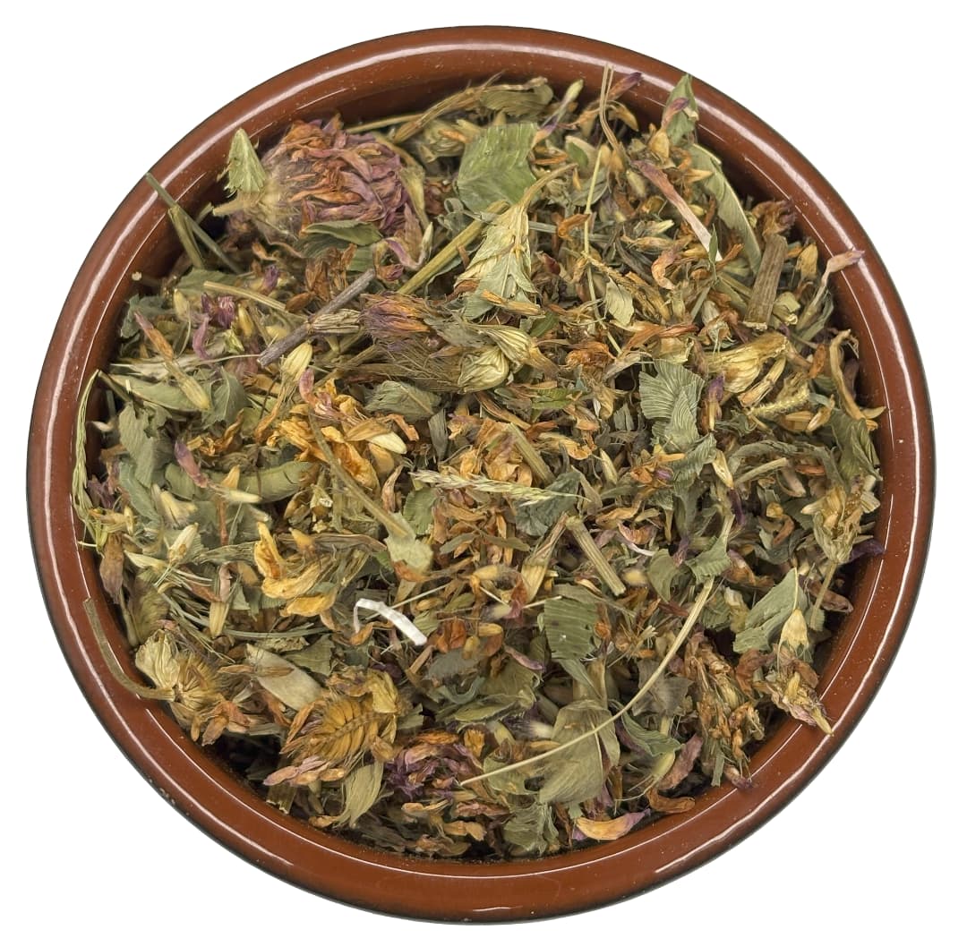 Red clover flower comes from the Trifolium pratense plant and is recognised for its delicate pink-red blossoms and mild, slightly sweet flavour. These dried flowers are often used to create herbal teas and infusions, bringing a gentle floral note to a variety of blends.